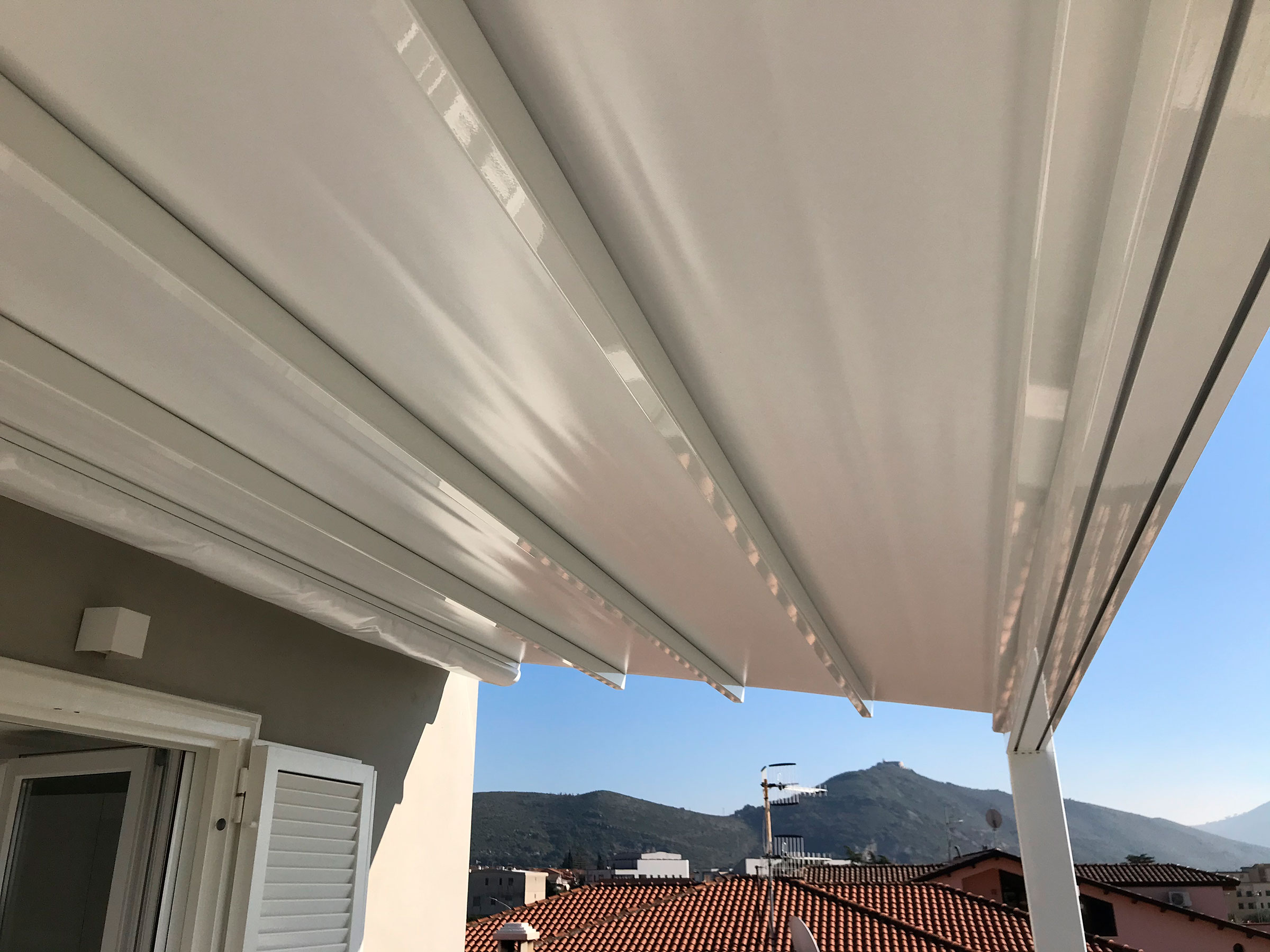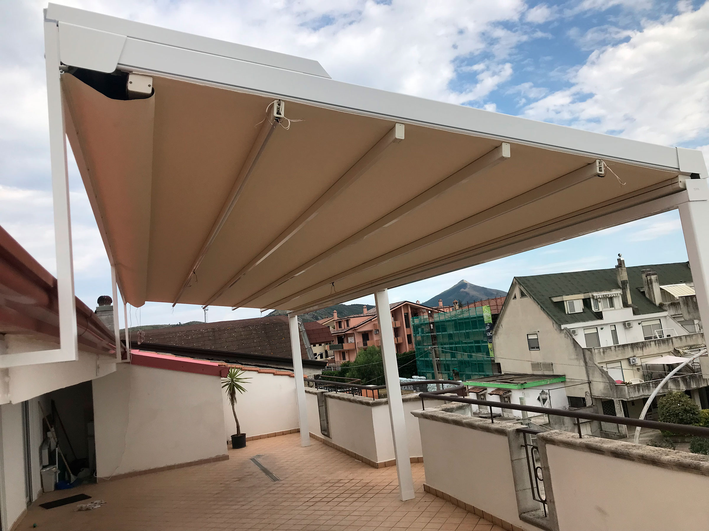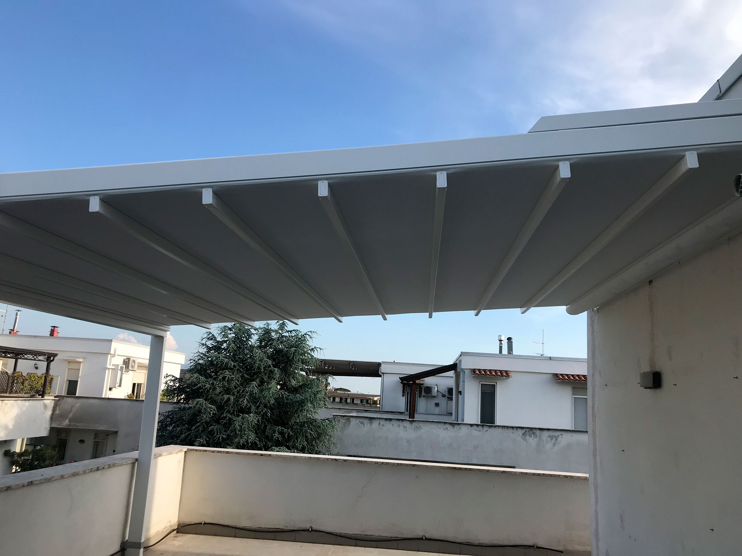 Le strutture vengono realizzate in alluminio o acciaio verniciato, con possibilità di personalizzazione nelle dimensioni, nei colori e nelle finiture. Le coperture possono essere realizzate con teli retraibili in PVC, lamelle orientabili o pannelli coibentati, a seconda delle esigenze di utilizzo e dello stile desiderato. Tutti i materiali impiegati sono selezionati per garantire durata, stabilità e protezione dagli agenti atmosferici, mantenendo nel tempo la loro efficienza estetica e funzionale.
